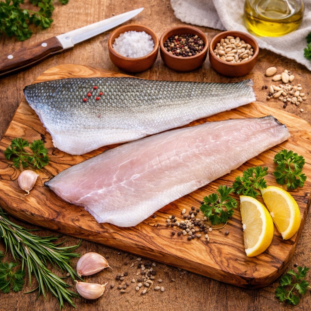 En filets avec peau, il se prête parfaitement à une cuisson à la poêle ou à la plancha : peau croustillante, chair fondante, résultat net et raffiné.