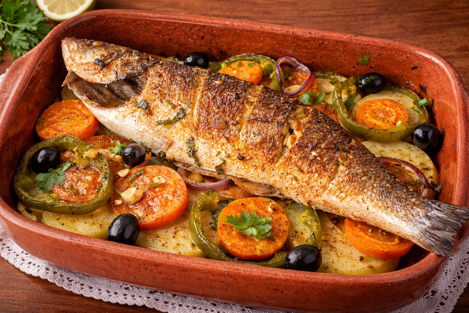 Poisson maigre, naturellement riche en protéines de haute qualité. Excellente source de vitamines B, de minéraux et d’oligo-éléments essentiels. Chair digeste et peu calorique, idéale pour une alimentation saine, raffinée et équilibrée, sans compromis sur le plaisir.