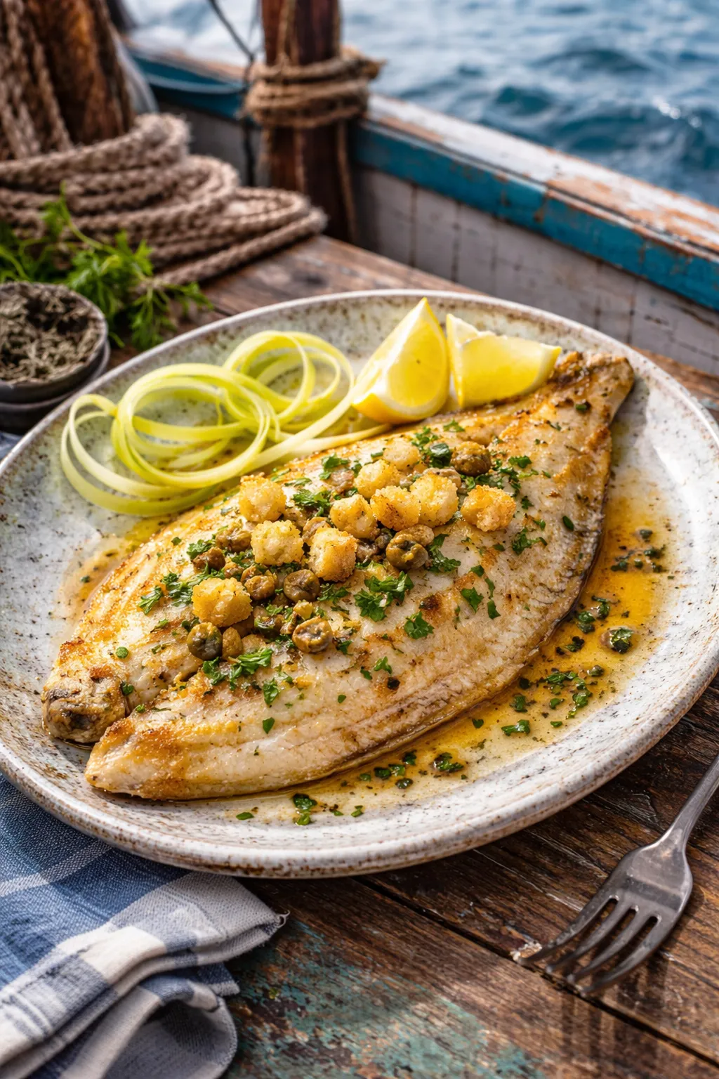 Sole à la grenobloise, câpres, citron et croûtons dorés, une recette expressive qui met en valeur la chair ferme de la sole sauvage.