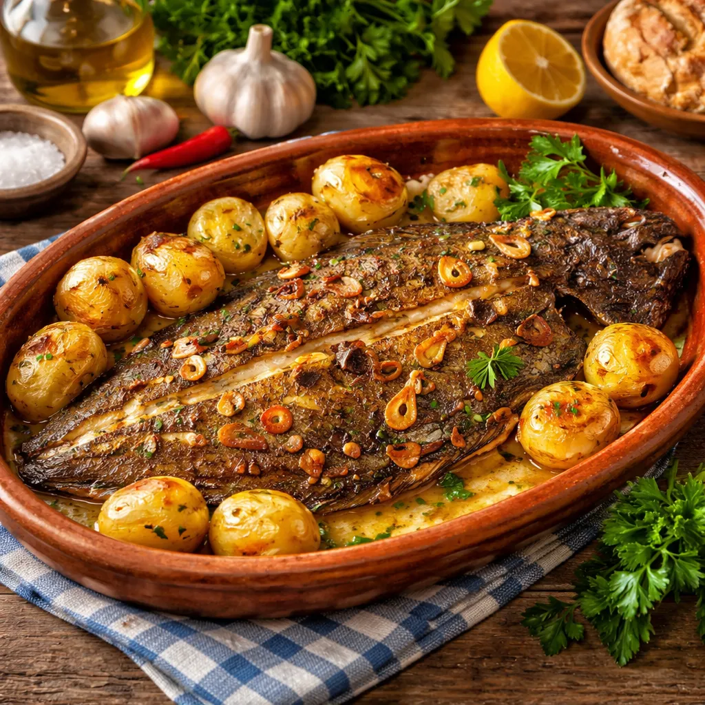 Sole au four, beurre citronné, entière, arrosée régulièrement, une alternative simple et efficace à la poêle.