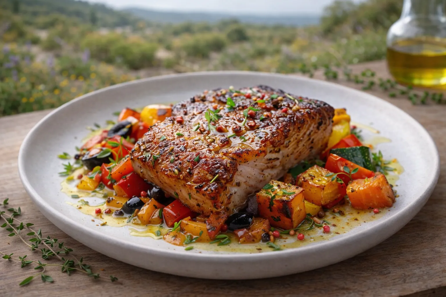 Tacaud à l’ail confit et huile d’olive : Cuisson lente à basse température avec ail confit. Chair fondante, arômes profonds, recette simple mais très expressive.